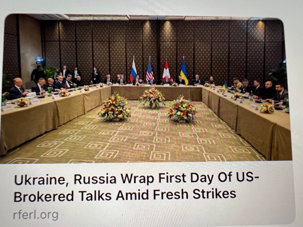 The talks are scheduled to continue tomorrow. But expectations for any meaningful progress are low. Contrary to my earlier hopes, the U.S. is still relying on Steve Witkoff and Jared Kushner to lead the American negotiating team, while on the eve of today’s talks, Donald Trump himself had this bit of presidential gibberish to offer reporters: